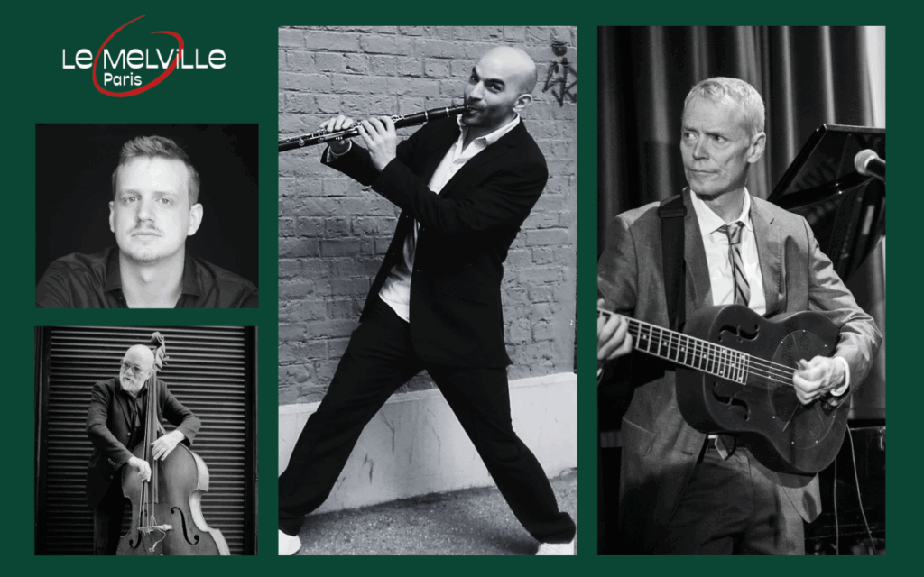Accompagné de ses deux musiciens de marque, Mat Le Rouge au saxophone et Thomas Racine à la batterie, il propose un style swing, blues & boogie inspiré du vieux jazz de la Nouvelle Orléans. Il vous étonnera avec un répertoire varié allant de standards à des réarrangements de musique classique toujours dans un style de vieux jazz américain.
